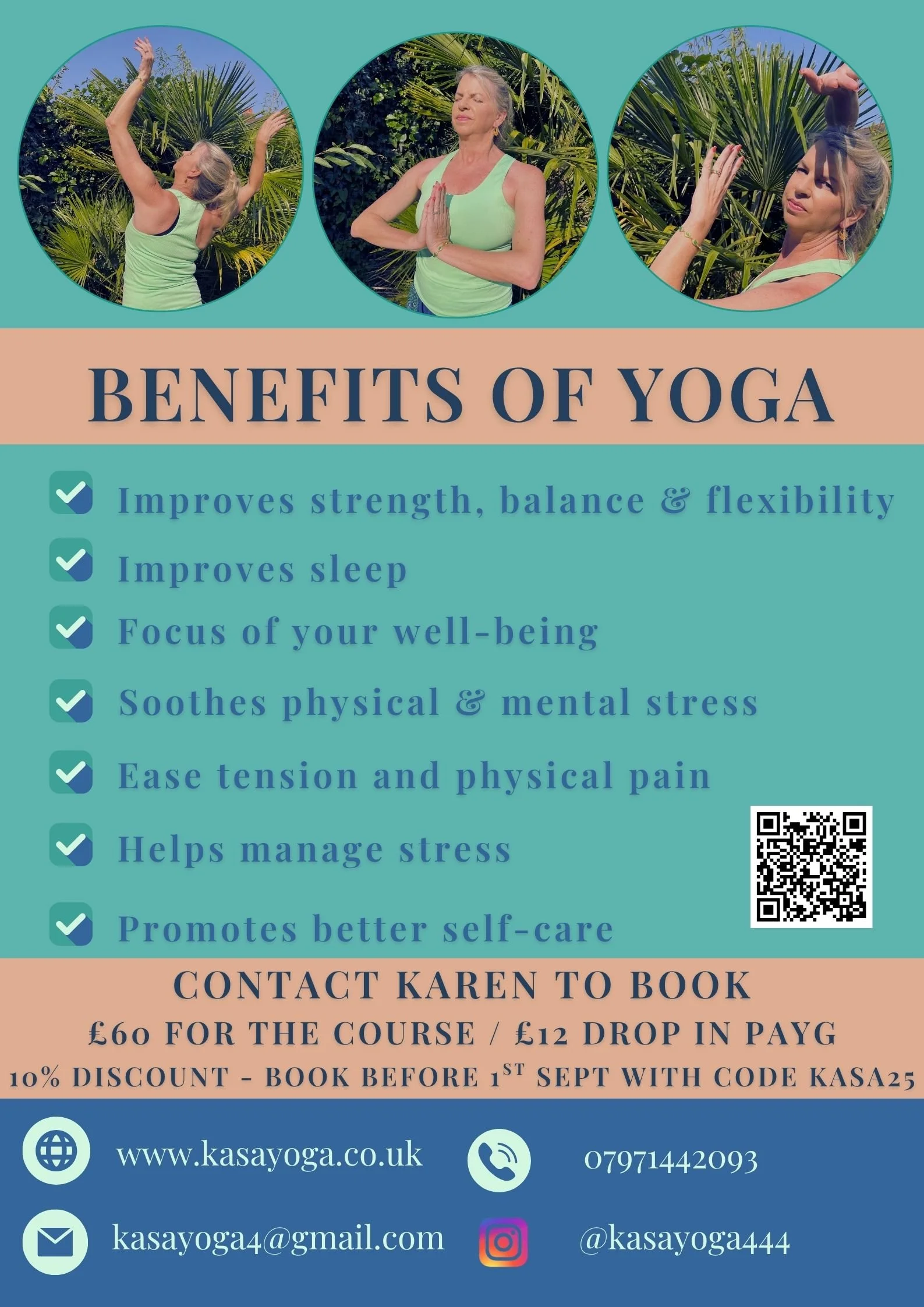 Accessible Poses: Explore foundational yoga poses (asana) designed for beginners, with variations and modifications to suit individual needs. Feel empowered as you progress at your own pace, gradually building strength and confidence.