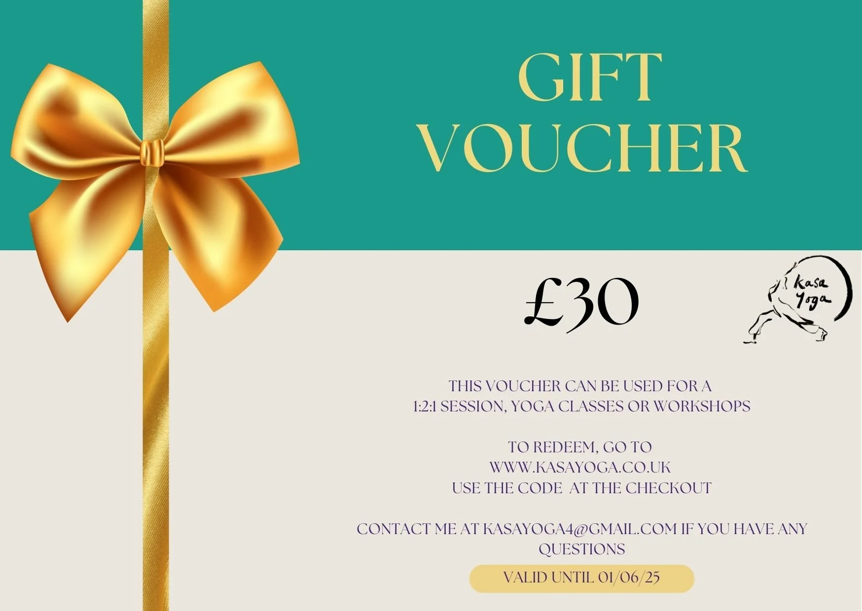 Your loved ones can redeem their voucher for any yoga service on my website or by contacting me directly!